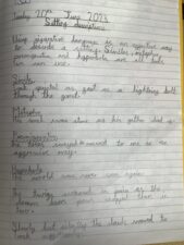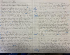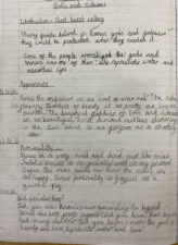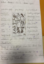 In Year 5 the children read Ancient Greek myths from our History Topic. They act out Perseus and Medusa in small groups to help build their vocabulary and prepare them for writing. The children continue to develop their Talk for Writing skills by: discussing the themes and conventions of the myths they’ve read; short burst writing where they describe the main characters and then by creating a story map with actions. Once the children fully understand the myth, they then write their own version using the original myth as inspiration. Once this process is completed, the children use boxing up skills to change elements of the myth i.e. the main characters/settings in order to write their own innovated myth.