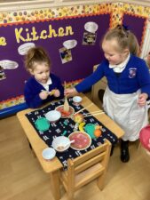 In Foundation 2 the children love the enhancements that are added to their role play area when they find out about Chinese New year. Lots of new vocabulary is introduced and the children use it with their friends as they pretend to cook and enjoy Chinese food. They also create their own story maps to help them re-tell the story. A basket arrived in Foundation 2 with some clues inside and a story for the children to share.