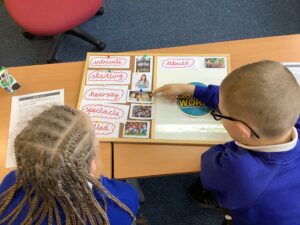 In Year 2 the children explore the story of ‘Starbird’ through dictionary work and vocabulary activities and character and setting descriptions. They continue to use Talk for Writing to learn, retell and edit the story so they can write their own stories based on the text.
