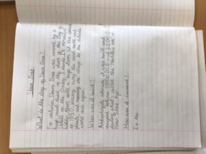In Year 6 the children study Stone Age to Iron Age and write a non-chronological report about Skara Brae, an island off the coast of Scotland which holds great historical importance for archaeologists looking for information about the past.