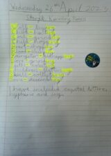 In Year 2 the children continue to build on their Phonics knowledge and work on spelling patterns. They use this knowledge in their writing and develop new techniques to enhance their writing. They complete short burst writing tasks such as character descriptions, setting descriptions and recounting events. They continue to act out the stories they read in order to make it a memorable experience and use these actions to create their story maps before rewriting their versions of a story.