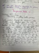 In Year 5 the children take inspiration from their class novel ‘Private Peaceful’ to write letters home from the trenches – focusing on the emotions, relative clauses and a range of new sentence types. They spend time in the outside classroom imagining what it would be like on a cold, uncomfortable morning in the trenches.