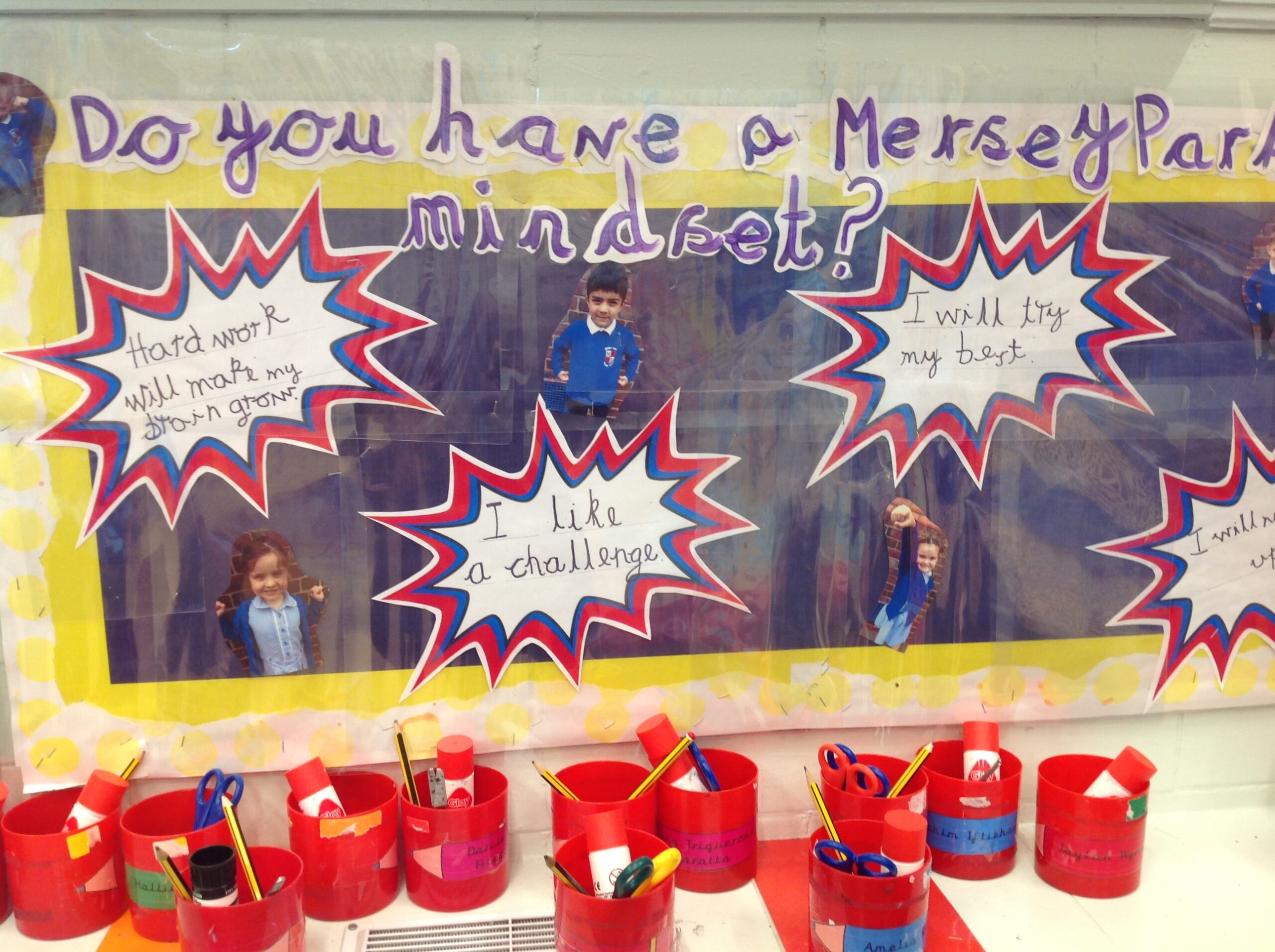 Two of our school values – ‘Work Hard’ and ‘Never Give Up’ perfectly match and support our Mersey Park Mindset approach to school life. We know that in order to fulfil the potential of our pupils and encourage them to become confident and resilient learners, staff also need to display and model the mindset of a learner who is not afraid of making mistakes but who thrives upon them, knowing that this is all part of the learning process. The way in which we encourage children to learn and explore is vital to their success, not only at school but at home as well. Mistakes are regularly shared and celebrated in our safe and secure learning environment.